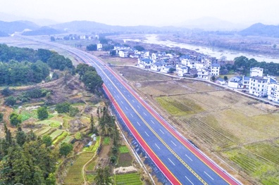2018年1月1日,在铅山县河永快速通道(河口至永平)上,工人正在画标示线,这标志着该快速通道即将建成通车。距离2016年11月底开工以来,13个月的时间的紧张施工,这条横卧河口镇至永平镇之间,10分钟仅能行驶完全程的美丽公路,终于就要向世人“见面”了。
